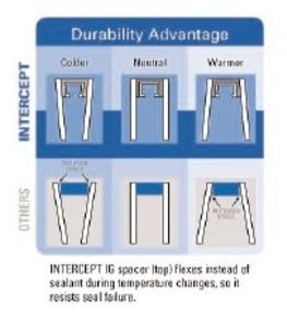 Intercept Spacer System / In an intercept™ warm edge spacer system unit, the spacer flexes instead of the sealant, so it resists spacer movement and premature sealant failure.